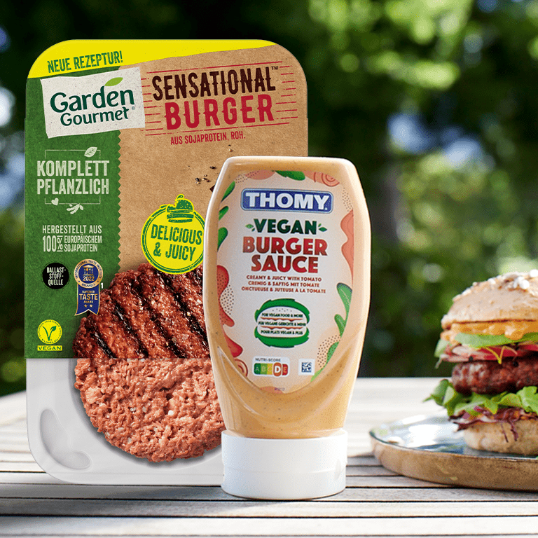Es ist Burger-Zeit! Warum? Weil alles nach Burger schreit! Also wir hören es zumindest laut und deutlich. Unsere Antwort darauf: Der Garden Gourmet Sensational Burger – supersaftig und richtig schön knusprig gegrillt. Dazu die veganen Saucen von Thomy. Yummy! Das perfekte Match für den Sommer.