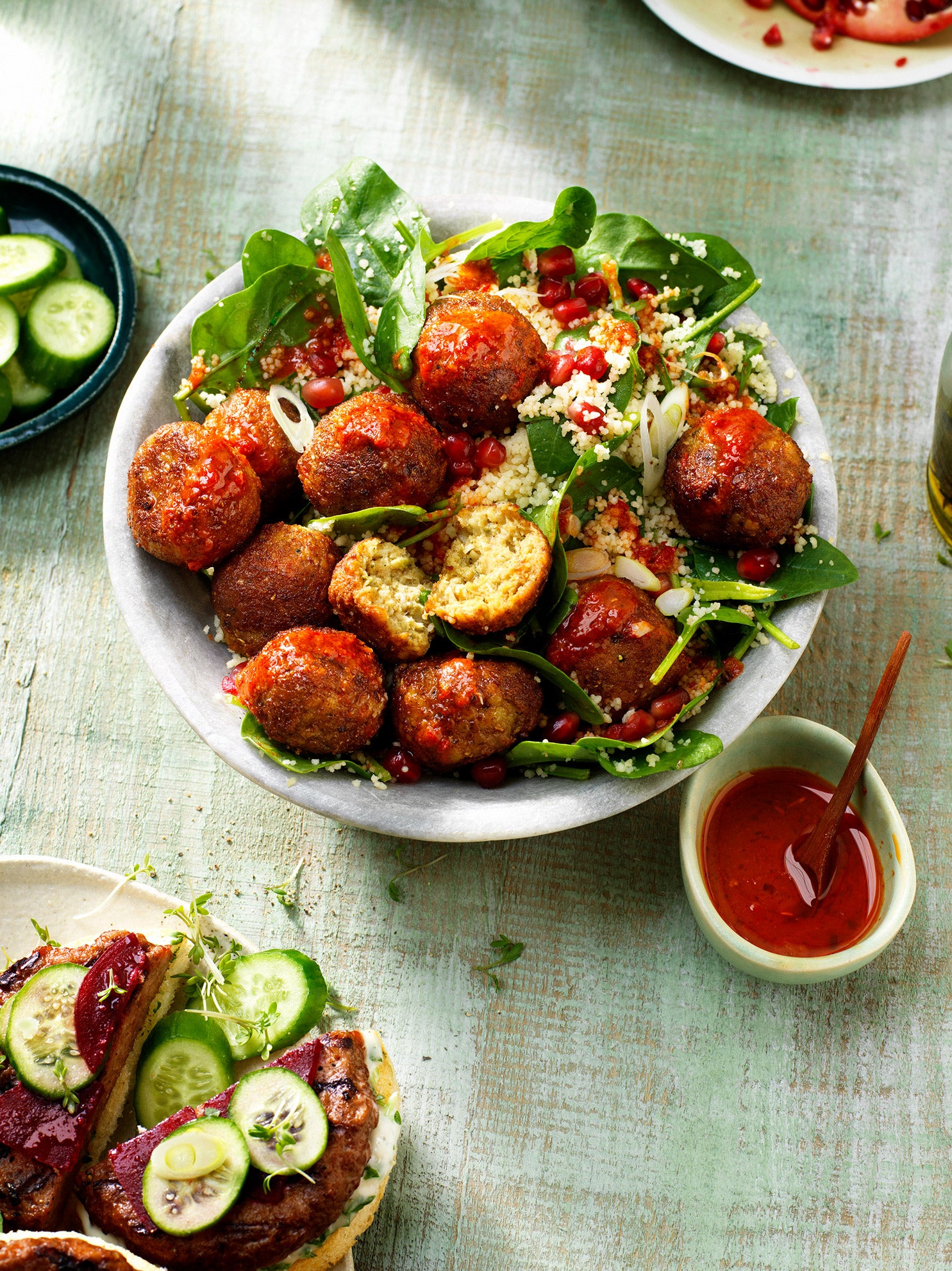 Die Garden Gourmet Vegane Falafel nach den Anweisungen auf der Verpackung zubereiten. Den Salat in eine Schüssel geben. Die Garden Gourmet Vegane Falafel darauf verteilen und mit dem Dressing beträufeln. Zusätzlich mit dünn geschnittenen Frühlingszwiebeln und Minze garnieren.